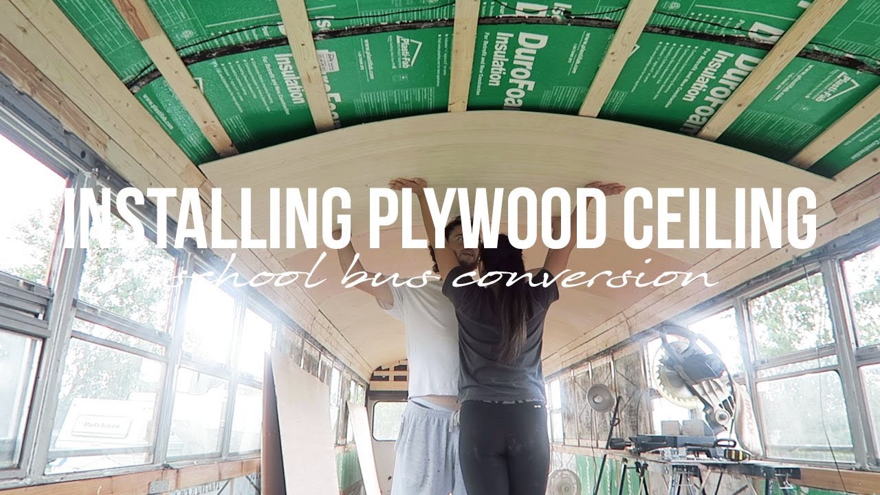 Installing Plywood Ceiling School Bus Conversion Runaway Expedition - YouTube